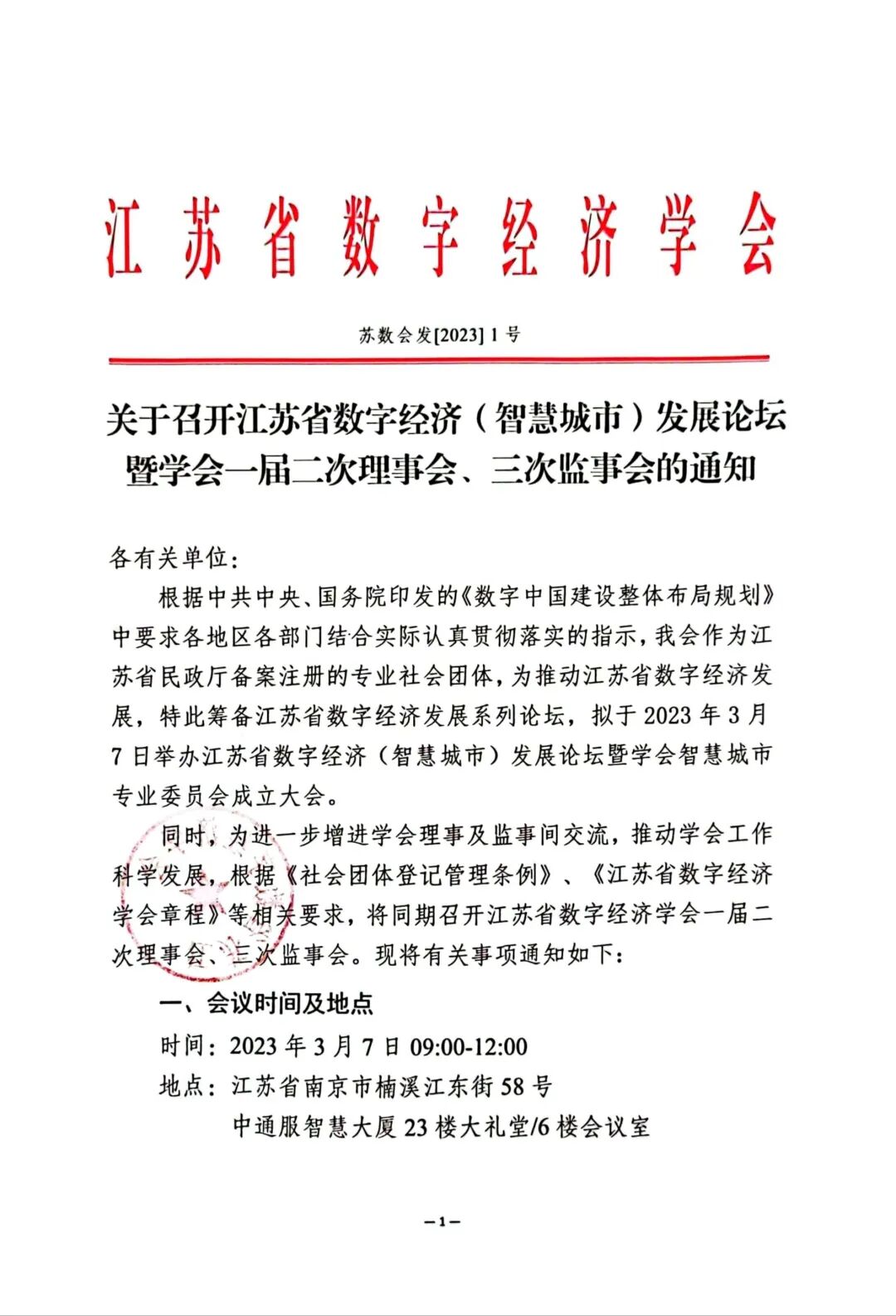 同时,为进一步增进学会理事及监事间交流,推动学会工作科学发展,根据《社会团体登记管理条例》、《江苏省数字经济学会章程》等相关要求,将同期召开江苏省数字经济学会一届二次理事会、三次监事会。现将有关事项通知如下: