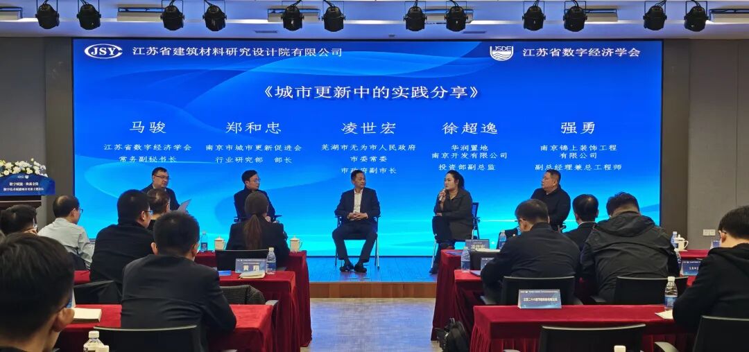 2025年11月29日,由江苏省数字经济学会智慧城市专委会、学会会员单位江苏省建筑材料研究设计院有限公司共同主办的数字技术赋能城市更新主题论坛在南京成功举办。会议由江苏省建筑材料研究设计院有限公司总经理叶明武主持,江苏省数字经济学会秘书长伍倩、常务副秘书长马骏出席会议。