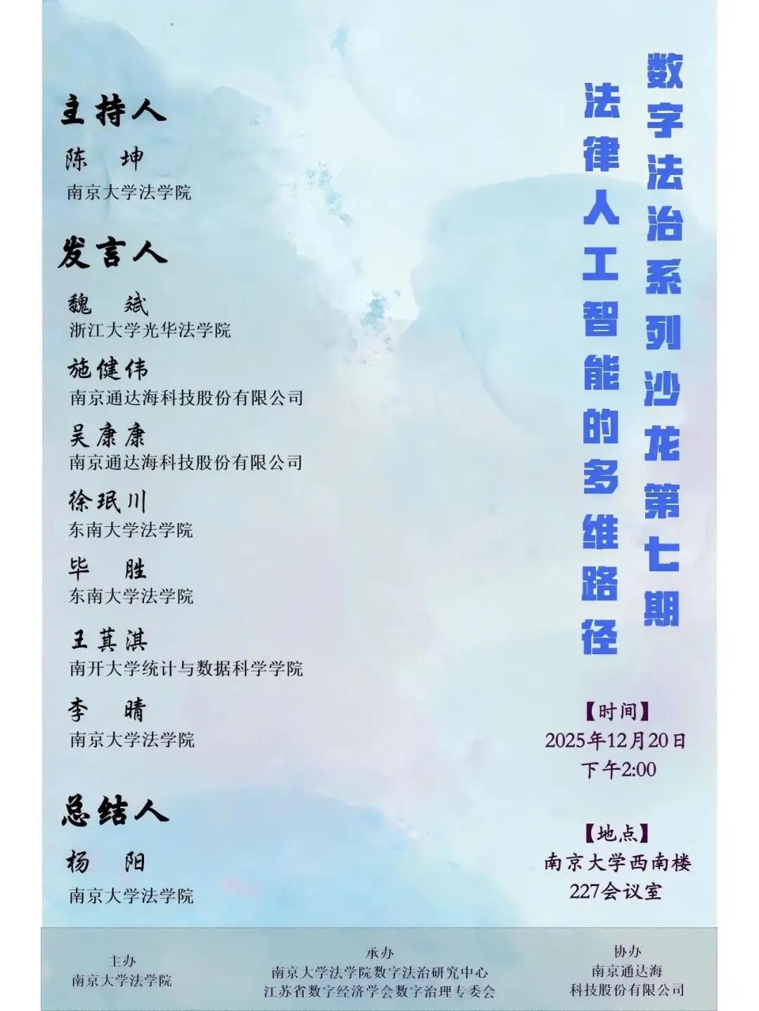 承办单位:江苏省数字经济学会数字治理专委会、南京大学法学院数字法治研究中心