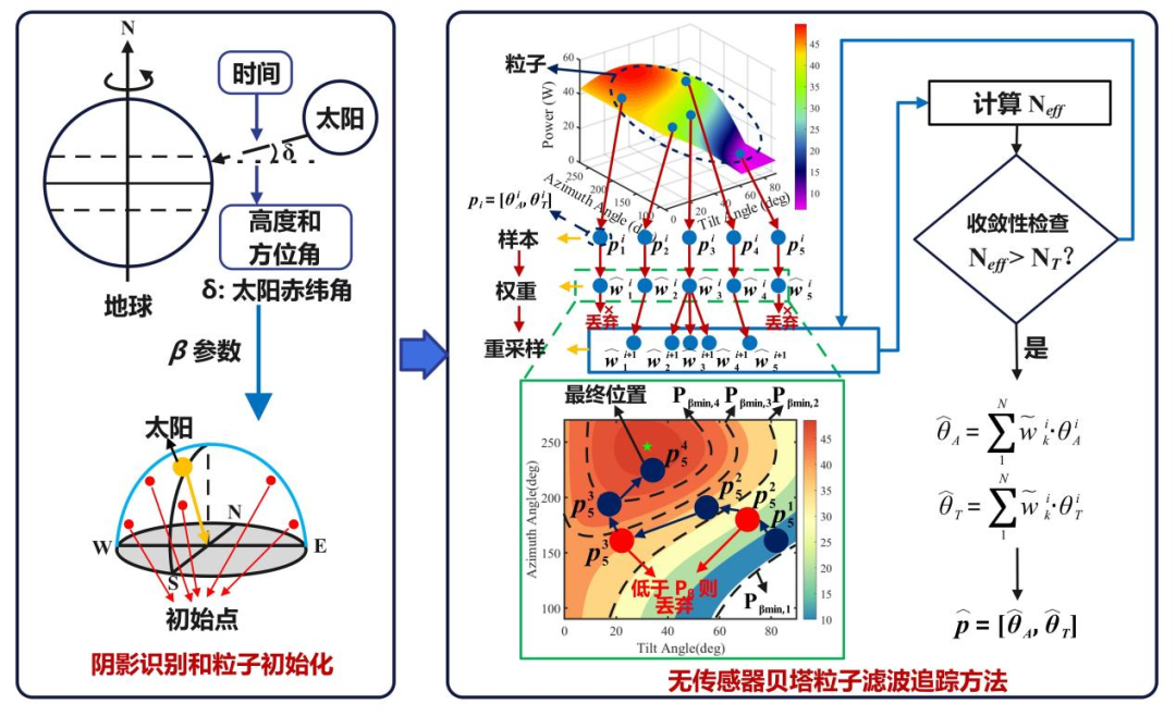 ——整体流程实现了从遮阴识别→动态约束→粒子优化的控制过程,从而兼顾追踪精度与物理一致性。这项工作有三个主要创新点: