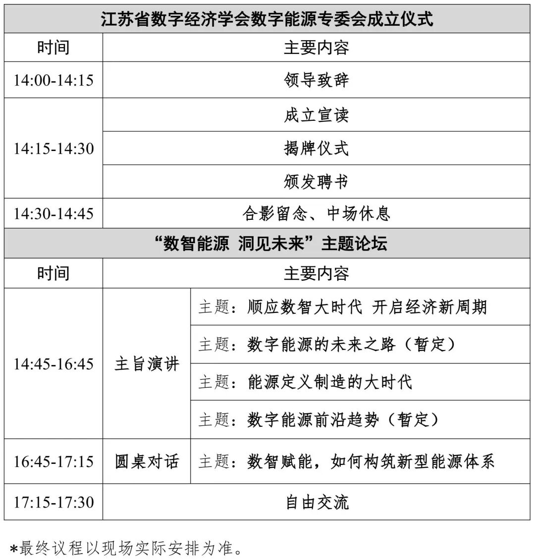 为进一步推动数字能源技术的创新与应用,促进能源产业的绿色转型与数字化发展,江苏省数字经济学会拟举办数字能源专业委员会成立仪式暨“数智能源 洞见未来”主题论坛。本次活动将汇聚产学研各界专家精英,深入探讨数字能源领域的最新发展趋势,并通过系列环节提升社会各界对数字能源的关注与认知,具体安排: